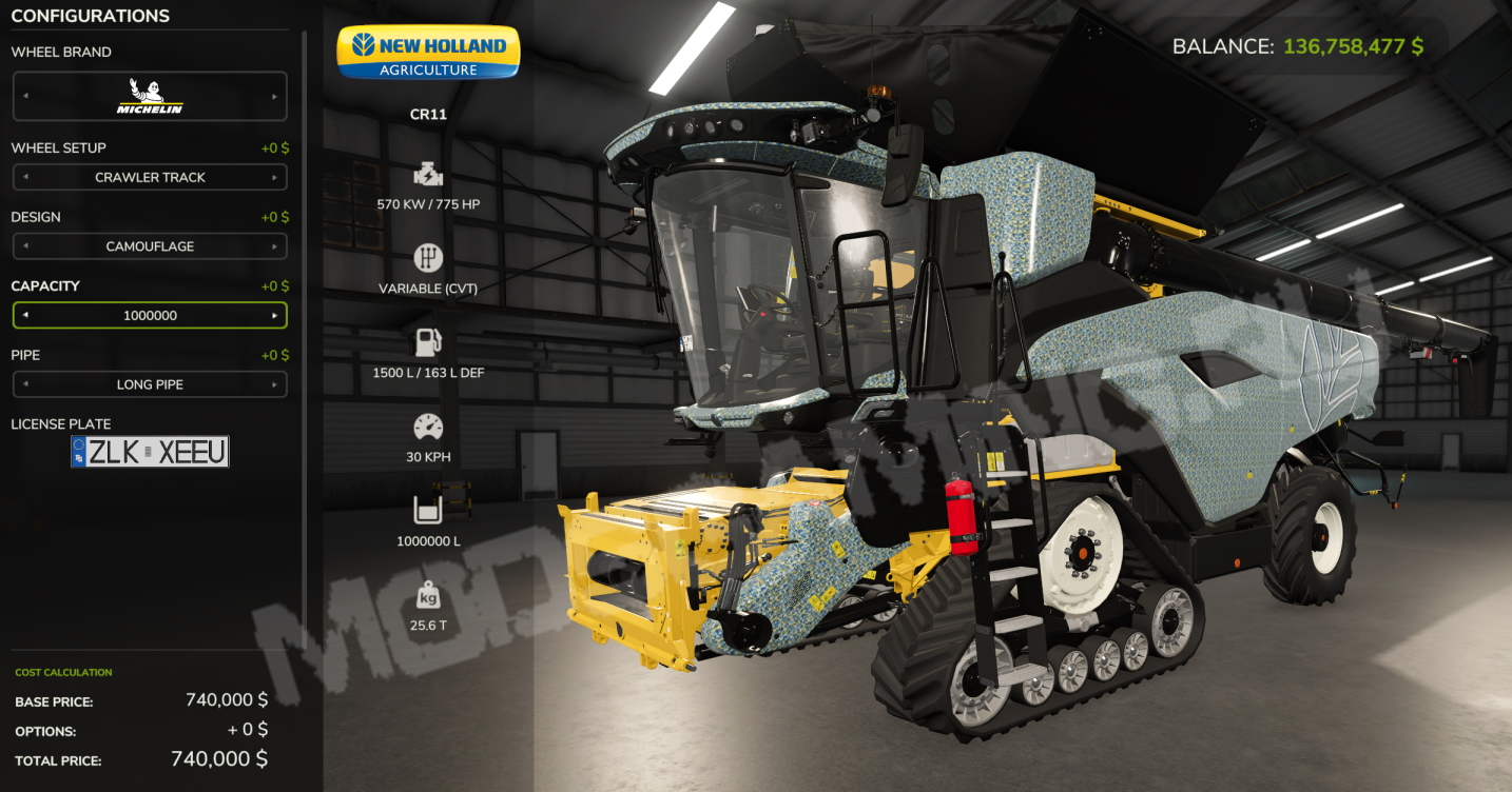 CR11 Includes the Gold Edition CR11 Includes a concept design config Includes the CaseIH design config Includes the macdon header with all matching configs as well. Includes 1000000 million liter capacity config