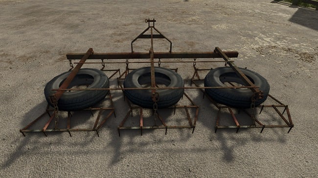 Cultivator with Tires for FS25. An envelope from FS22 to FS25 of an old cultivator with weights in the form of wheels. - Price: 100; - Working width: 4 meters; - Required power: 100 hp..