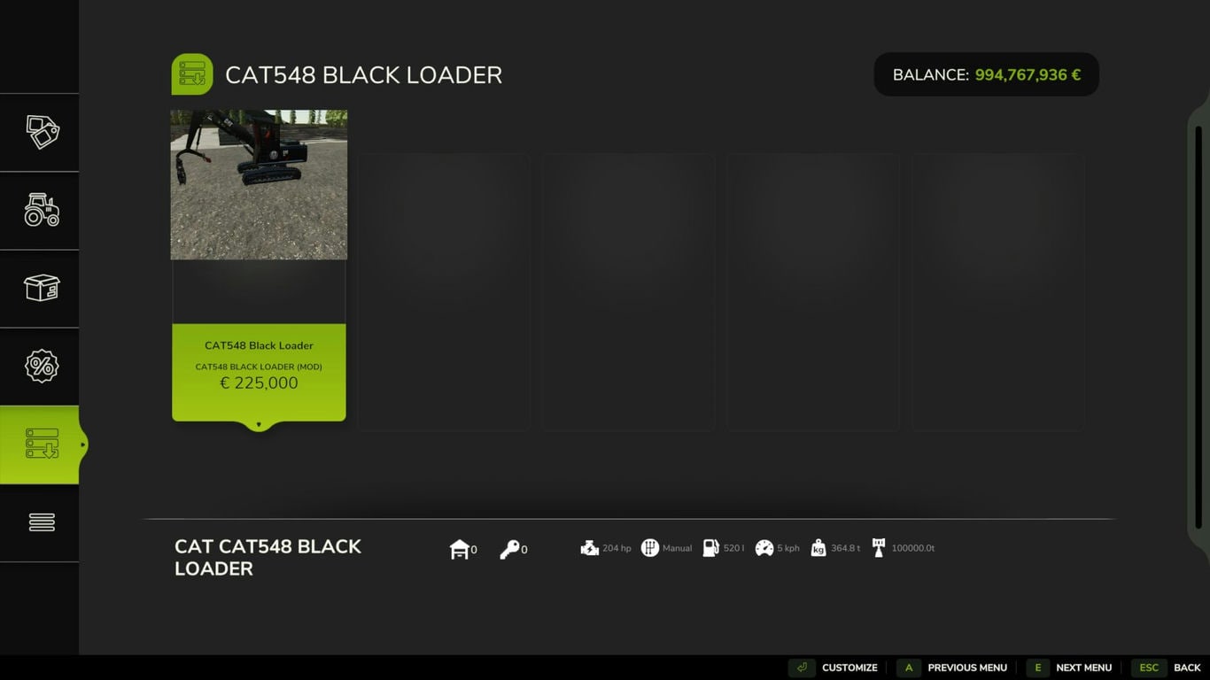 CAT 548LL Black FS25 v1.0.0.0 (1.15.x)