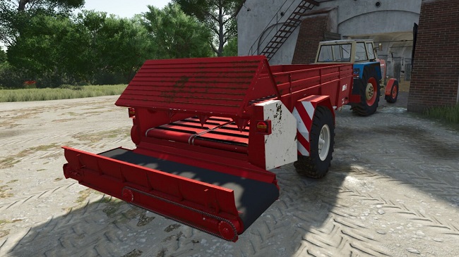 The RUHR-5 manure spreader is designed for transporting and applying solid agricultural fertilizers, in particular manure, compost and slurry. - Length: 6600 mm, weight: 2270 kg, slope steepness: 12%, working speed: 2-10 km/h Credits: Czechoslovak1989´s Farming |