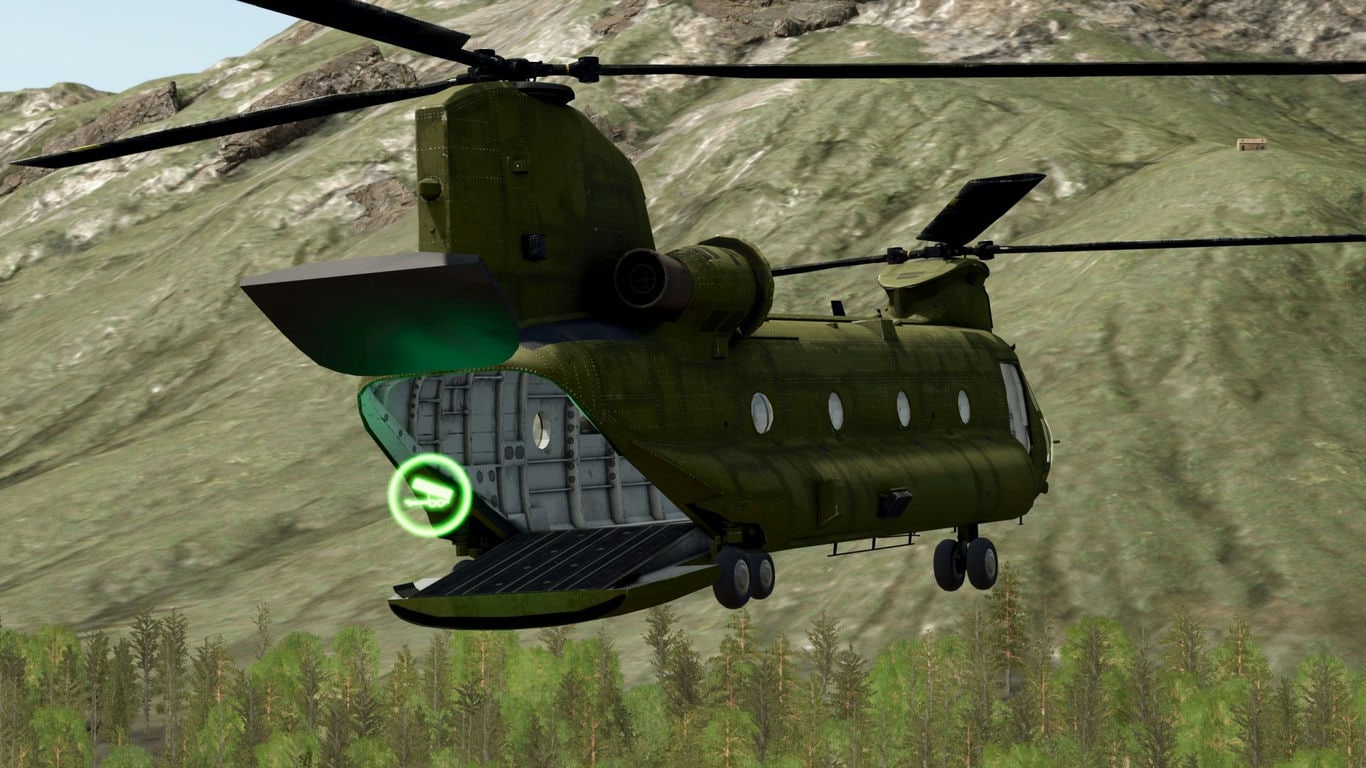 The unloading unit is located under the helicopter; pallets can be thrown to the left by pressing the "I" key.