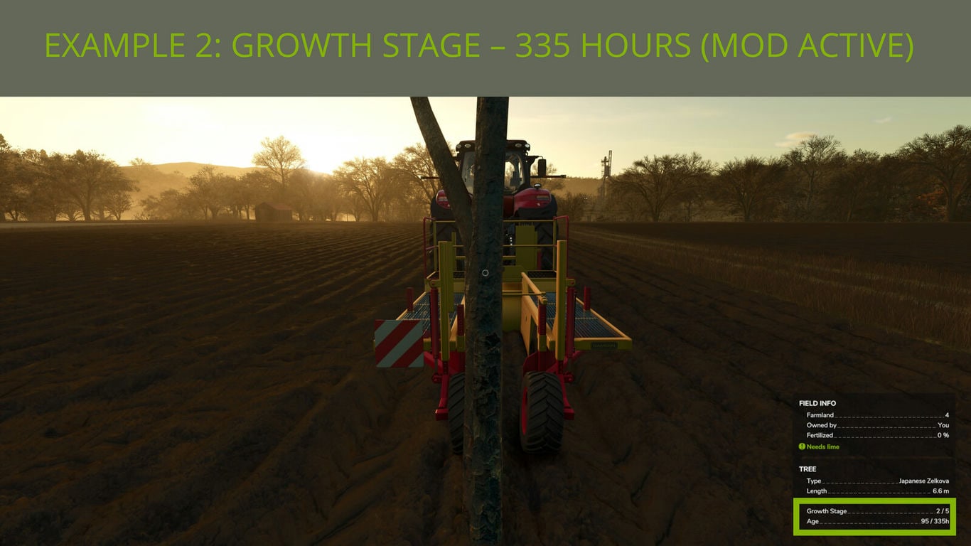 Trees grow 4 times faster! This mod reduces the initial growth time of all types of trees by up to 25%, which allows you to speed up harvesting and increase the efficiency of logging operations. Credits: Vogt Games |