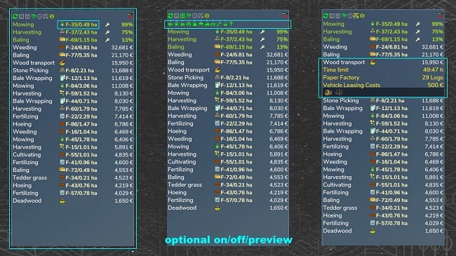 Description: Shows the current/launched missions or ... in real-time mode in the display window. You can adjust the display window and align it if desired. - Visible vehicle information that can be turned on and off In version 1.0.0.2: Credits: HappyLooser |
