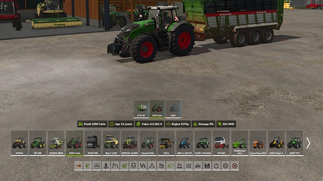 - Added many new details to the vehicle/equipment information screen, including required power, filling level/capacity, weight and working width.
