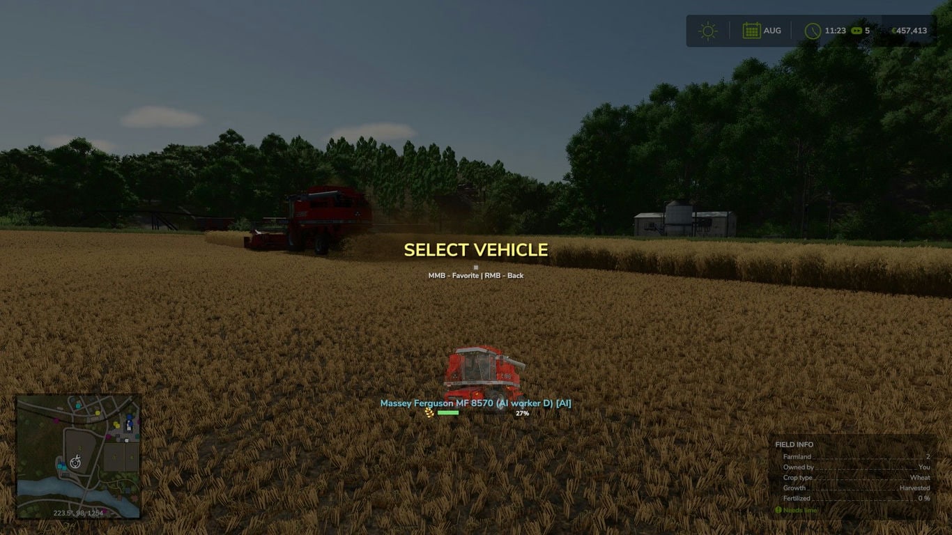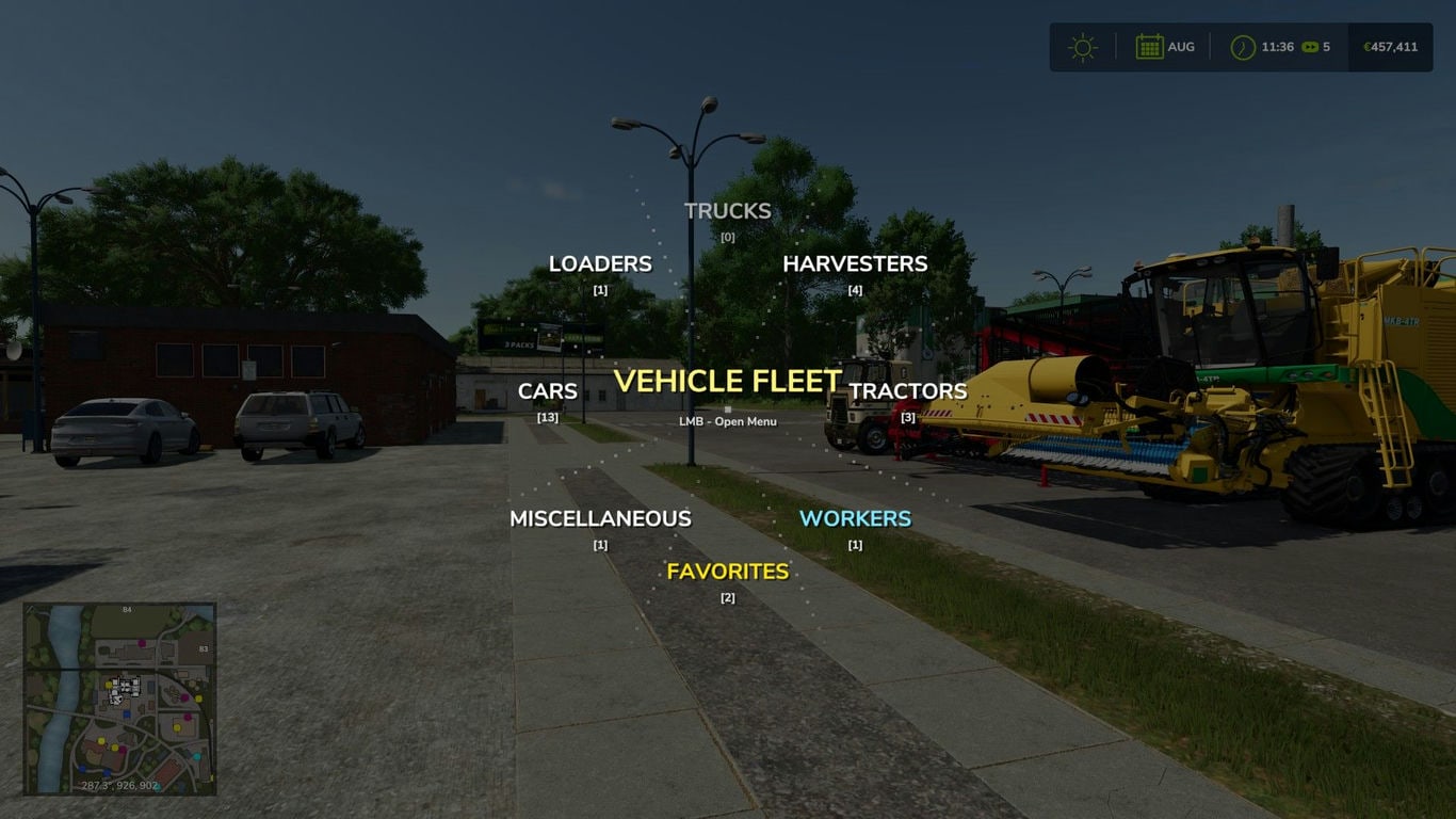 This mod replaces the standard sequential vehicle switching with an animated radial menu. When you hold down the Tab key, a graphical interface appears where all vehicles are automatically categorized: tractors, combines, trucks, loaders, and cars. The menu is designed for real-time farm management. Vehicles operated by AI workers are highlighted with a special blue indicator and grouped into a separate category. For combine harvesters and trailers, the menu displays dynamic fill level indicators, including accurate percentages, and crop icons, allowing you to instantly monitor the status of the fleet. Credits: DrivePro |