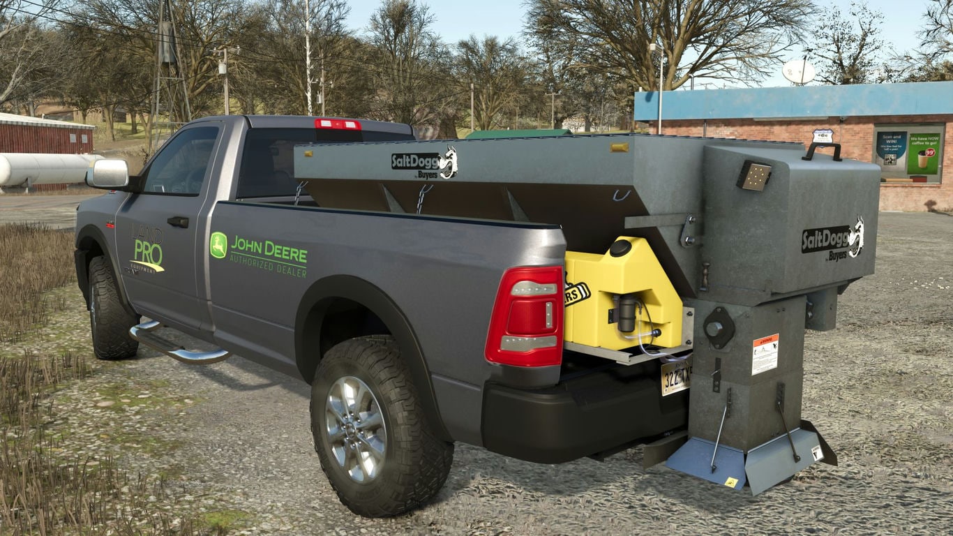 A salt spreader for mounting on a saddle device. Sprinkles salt to remove thin layers of snow. Salt is ineffective in deep snow. - Price: 8000€ Supported pickups: Credits: Canada FS, pZonaKo |