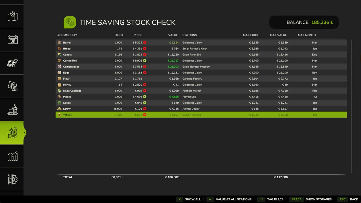 Tired of wondering where all the wheat you've harvested is, its value, when to sell it, and how much you can get for it? You can find out here!