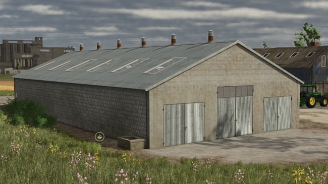 A big white cowshed. - Maximum number of animals: 72 (48 adults + 24 young calves possible) Credits: RajotGPLAY |