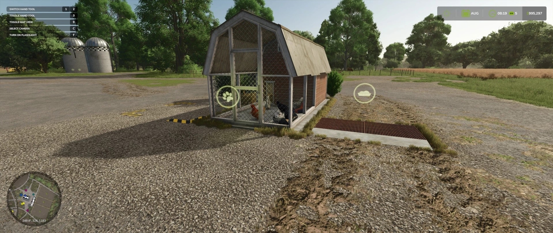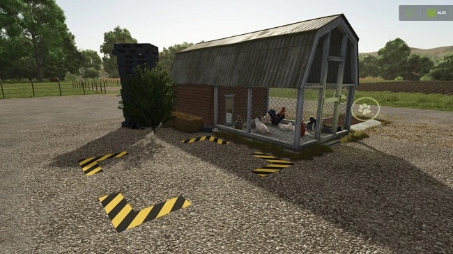 This small coop was made based on the in-game coop, but with many additions. The coop accommodates 50 birds, and all triggers are positioned for easy access. Adding foliage and textures makes the coop more suitable for your game, and adding a moving feeder also adds to the look and feel of the coop. Credits: asylummodding |