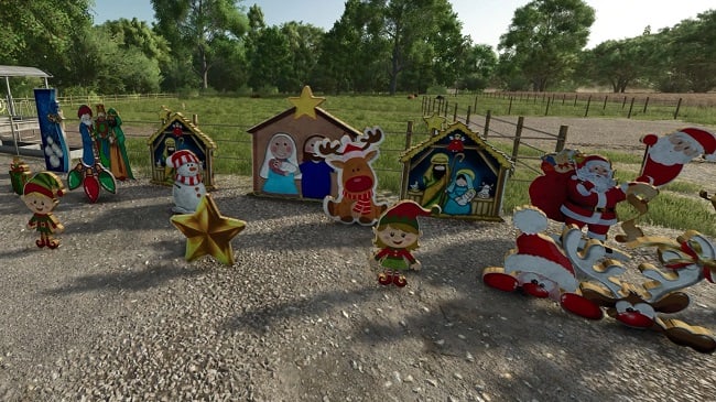 Christmas wooden figurines to decorate your farm in FS25! Credits: BB MODS, Squigglze |