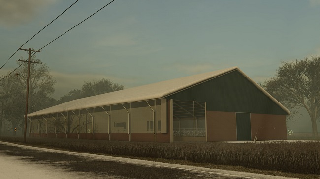 A cowshed for free maintenance for 80 cows. Feeding and adding straw can be done in the middle. Animals can be delivered through the doors at the front of the building. - Category: Animal pens; Credits: [DMI]20mmNormandy |