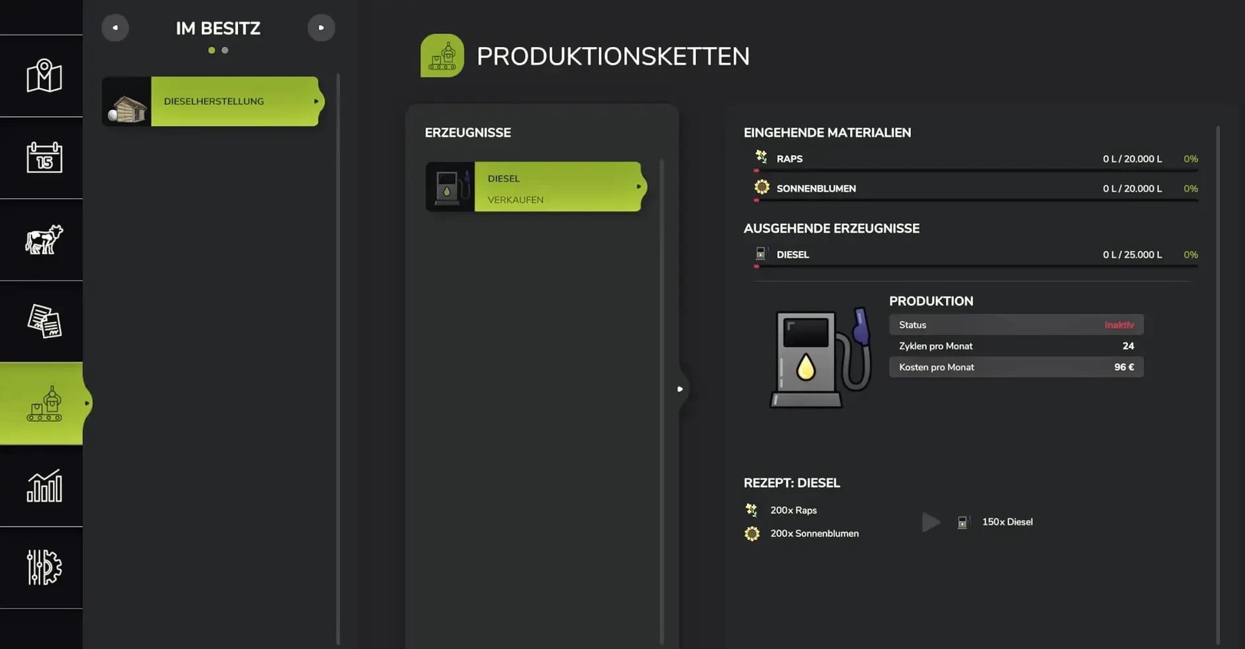 Small farm production of diesel fuel.