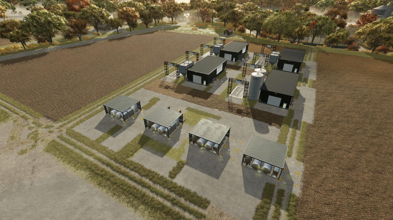 - 4 large farms: fertilizers can not only be produced from raw materials, but also stored and bought. There is also a pallet sales point.