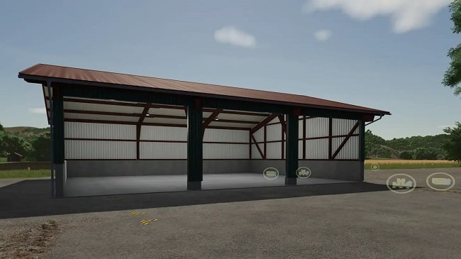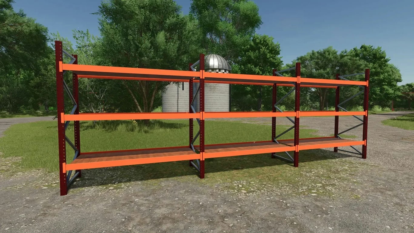 Two buildings that accept bales and pallets, as well as three high-strength racks specifically for pallet storage. Perfect for efficient warehousing and logistics on your farm!