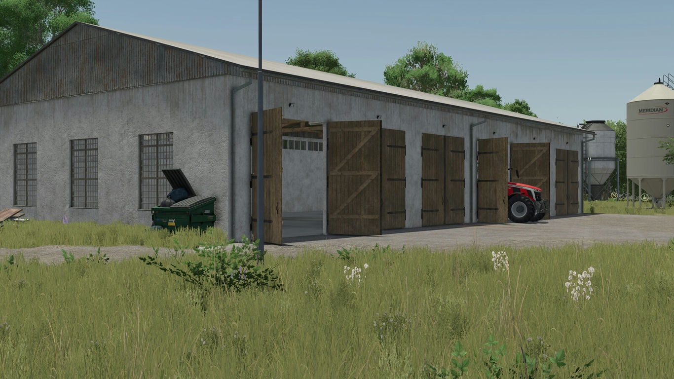 The kit includes a hangar for vehicles, a medium and large silo, a pigsty, a workshop with an office and a pit for maintenance, a granary and a manure storage.