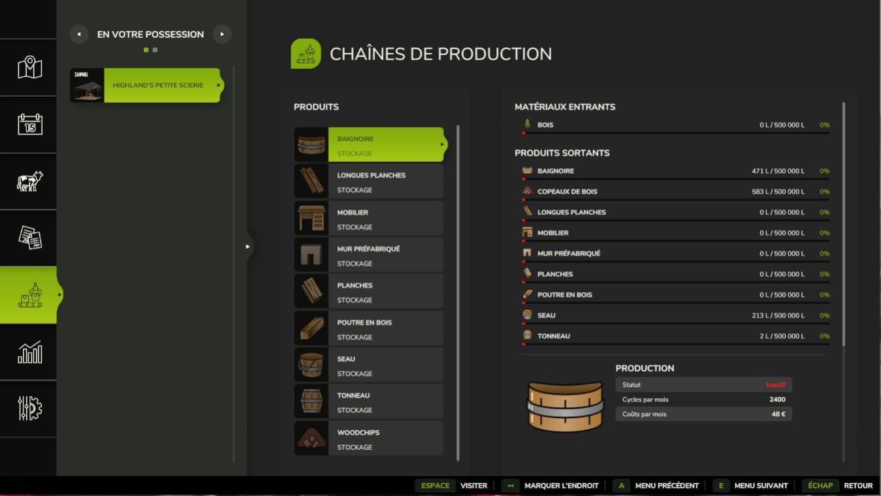 Bathtub, Furniture, Prefabricated Wall, Bucket, Barrel, Shavings, as well as basic recipes: Long Planks, Wooden Beam and Simple Planks.