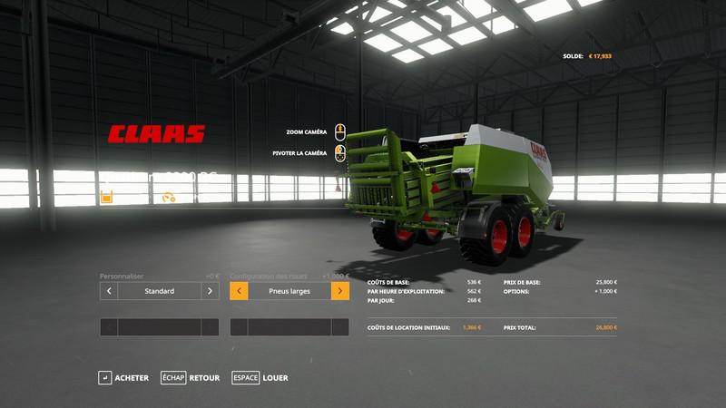 MOD CLAAS QUADRANT 2200 RC V0.9.2.1 FOR FARMING SIMULATOR 2019 You can open the panels. Version 0.9.2.1 bale capacity: 4000 Cost: 25800 Complete set: Wide wheels and rear attachment for the ATV. Credits: IPF & Thomas79 |