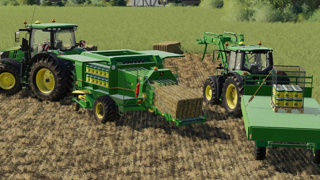 Requires the optional Straw Harvest Mod, which offers a bale counter and the ability to load the balers with twine.