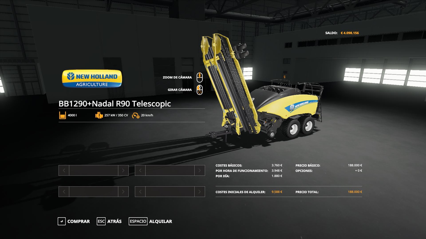 MOD NEW HOLLAND BB1290 NADAL R90 TELESCOPIC V1.0.0.0 FOR FARMING SIMULATOR 2019 Caracteristicas: Credits: JavierZzs, Toymatao |