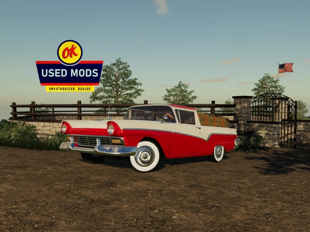 MOD 1957 FORD RANCHERO V1.0.0.0 FOR FARMING SIMULATOR 2019 Brand new to FS19 is this 1957 Ford Ranchero. Ford is said to have designed it after they received a letter from a woman who said she needed "a car to drive to church on Sunday and take animals to market on Monday." Personally, I think Ford got it right. The Ranchero was produced in 3 different trim levels and had engines ranging from 144 to a dedicated 285 hp engine. supercharged. This mod has two-tone color options, 3 wheel options, and three different tire options. My grandfather had a 1957 Ranchero for many years and so I wanted to use it in the game. My grandfather was a mechanic, he had 12 motors. Every time he built an engine for him, a customer came to his Shell like a station he owned and needed it. He sold them his motor and then rebuilt them and the cycle repeated. The 3D model was commissioned by the brunomcardoso 3D modeler who did an amazing job. Special thanks to Anthony W. for support on this matter!