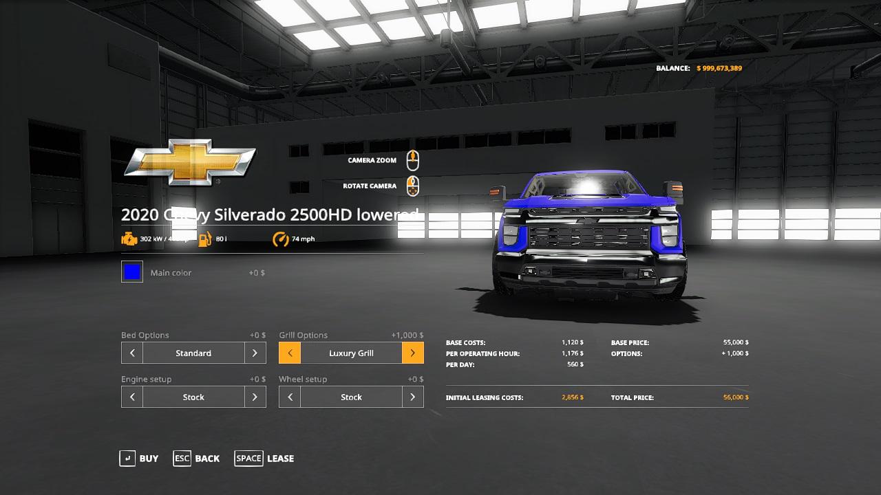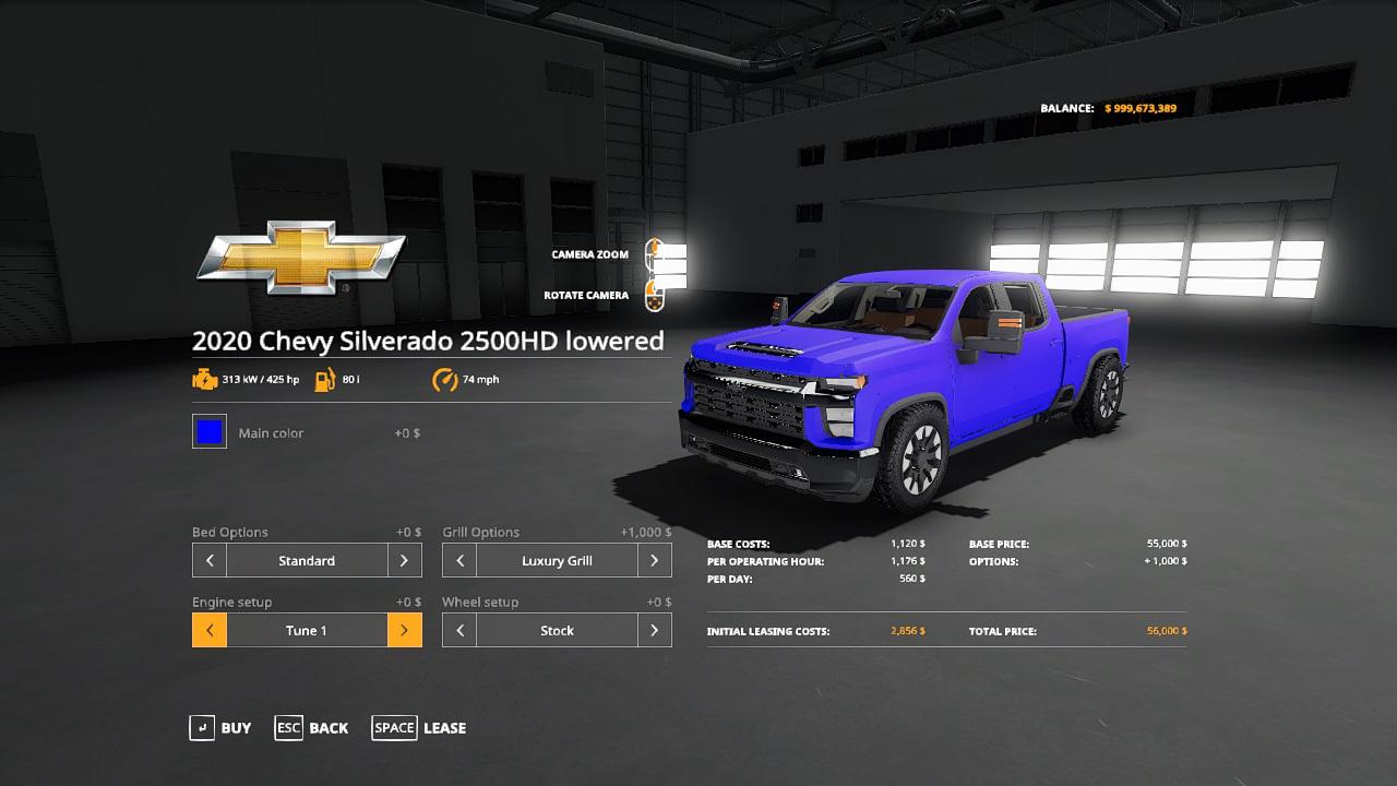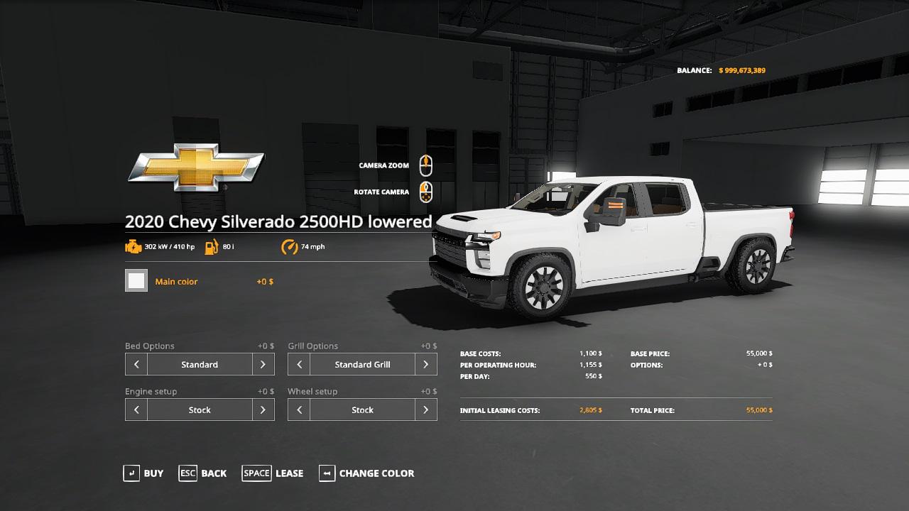 Mod 2020 chevy 2500HD lowered v1.0 for Farming Simulator 2019 Power 410 HP Credits: adub modding |