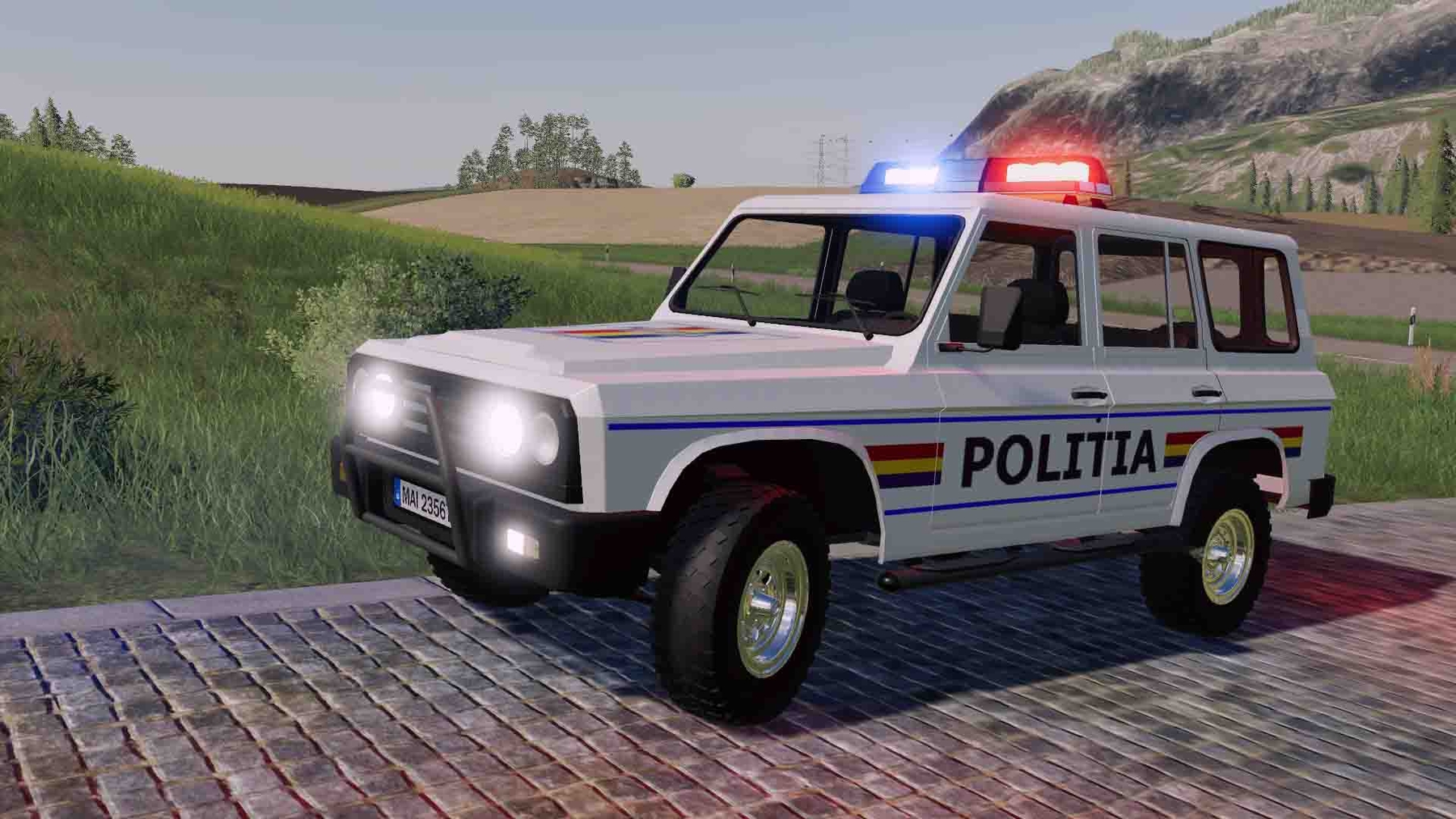 MOD ARO 244 POLITIA V1.0.0.0 FOR FARMING SIMULATOR 2019 - Power: 63 kW / 85 hp; - Speed: 115 km / h; - Fuel tank volume: 60 liters; - Cost: 2,000 €; - Animated devices; - Working lighting equipment; - Working mirrors; - Leaves wheel marks.
