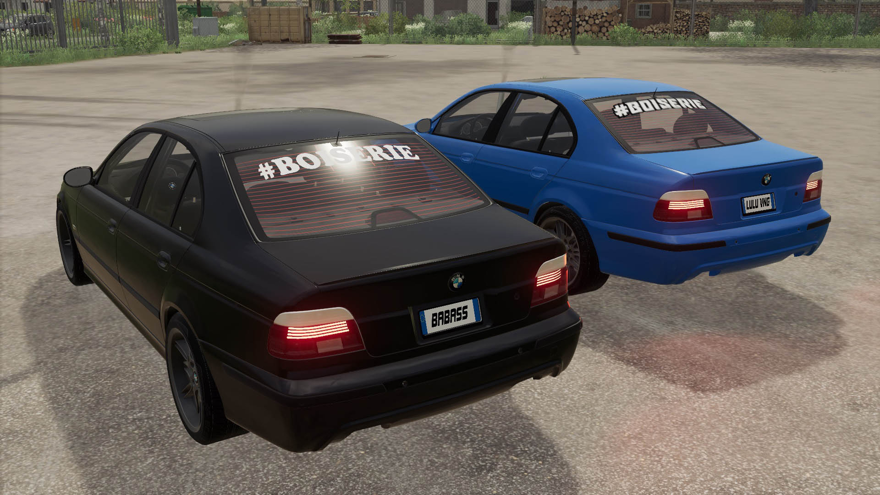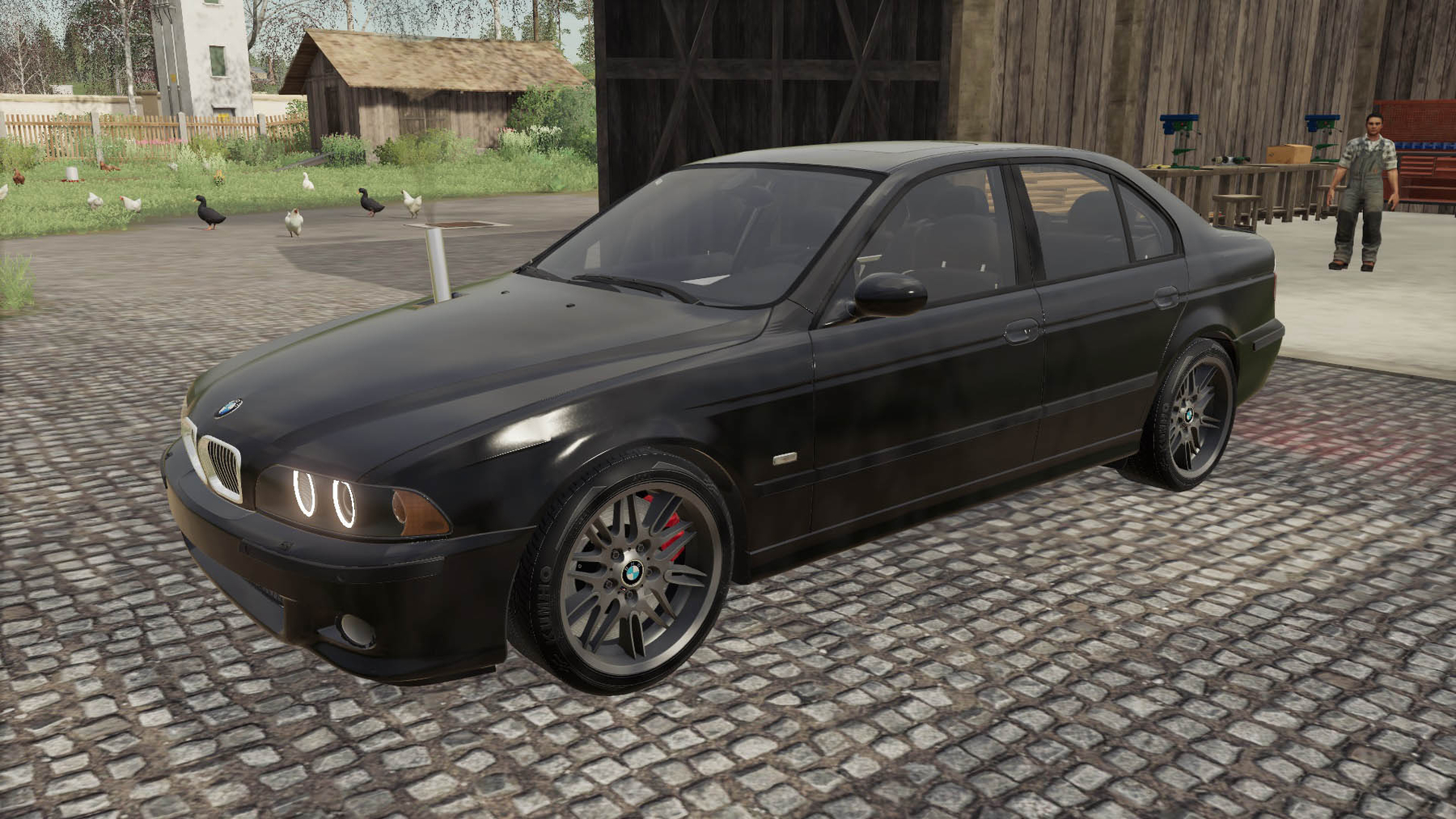 Mod BMW 530D E39 V1.0.0 for Farming Simulator 2019 - Power: 150 kW / 204 hp.; - Speed: 220 km / h; - The volume of the fuel tank: 80 l.; - Cost: 24 355 €; - The choice of the main color; - choice of stickers; - Choice of a license plate; - Working lighting; - leaves traces.