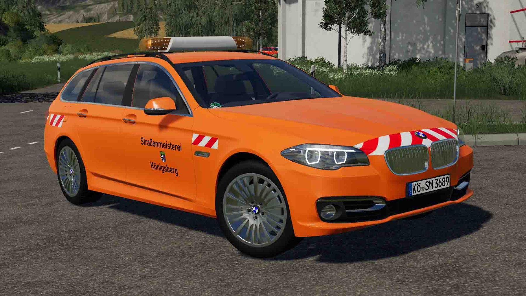 MOD BMW 5ER F11 TOURING V1.0 FOR FARMING SIMULATOR 2019 - Power: 140 kW / 190 HP; - Speed: 230 km / h; - Fuel tank volume: 70 l .; - Cost: 20,000 €; - Choice of the main color; - Skin selection; - Choice of strobe lights; - Beacon selection; - Support for the "Simple IC" script. - Animated devices, pedals; - Working lighting equipment; - Working mirrors; - Leaves wheel marks.