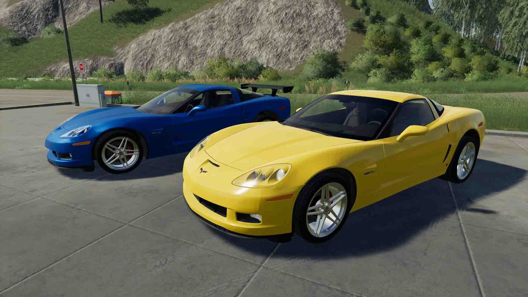 Mod CHEVROLET CORVETTE Z06 2006 V1.0.0.1 for Farming Simulator 2019 - Power: 371 kW / 505 hp.; - Speed: 240 km / h; - The volume of the fuel tank: 90 l.; - Cost: 65 800 €; - The choice of the main color; - Choice of design color; - Choosing a spoiler; - The choice of engine; - An awning is put on the N key; - Animated appliances; - Working lighting; - Working mirrors; - leaves traces. Archive unzip! Authors: Mrboomnastic, Winston9587, Lambo Mods, Edit: CocoJamboo.