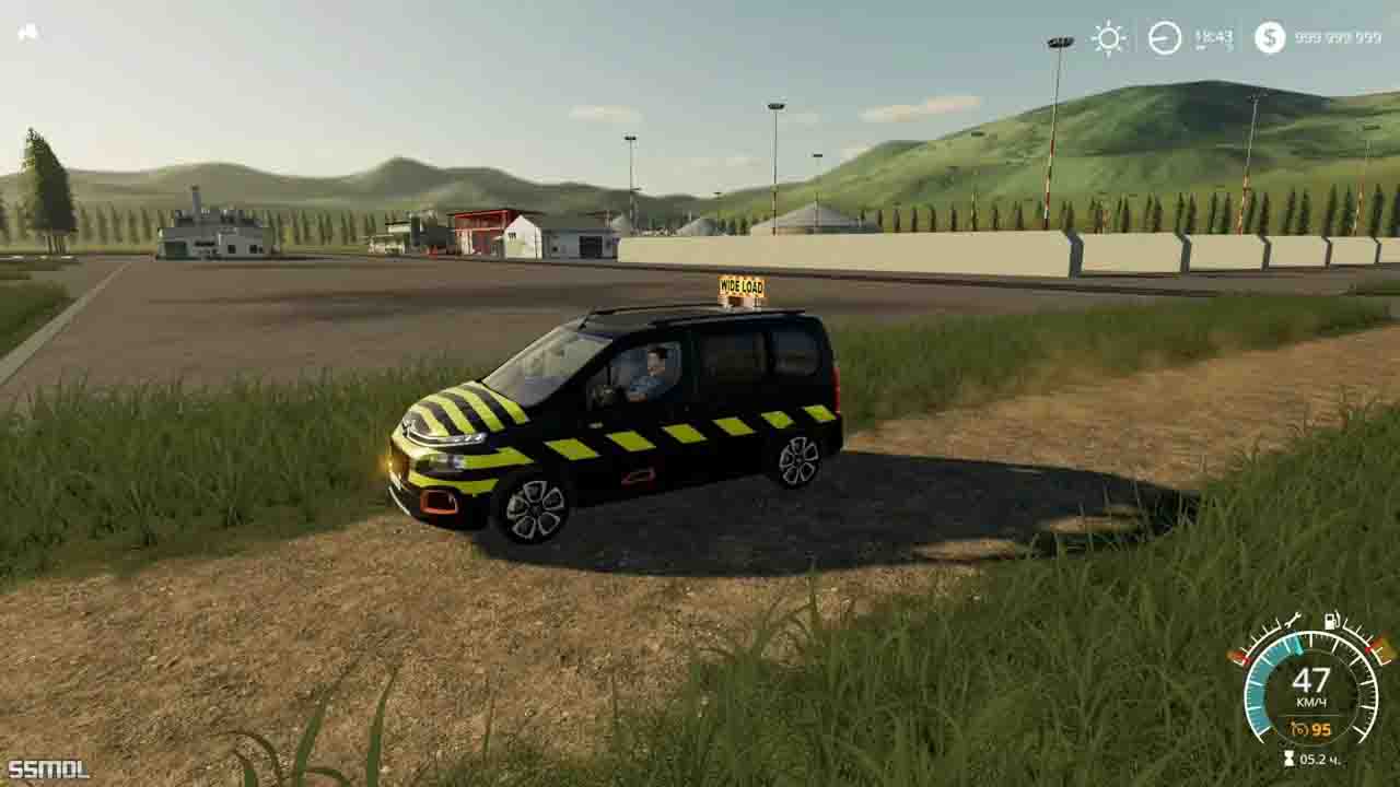 Mod CITROEN BERLINGO PILOT CAR V1.2.0.0 for Farming Simulator 2019 -Made a new skin texture. -Added real light at the top -Added strobe lights in front -Added configuration for 5 signs * Last scam (Norwegian) * Ledebil (Norwegian) * Wide load * Oversized cargo * Pilot car watching me -Added Norwegian car sign no. (maybe later an update will come to switch to English.) -Added dark glasses on the back of the car windows. Authors: : Giants, TschiZack Gameing, Bluelight-Modding Credits: - |