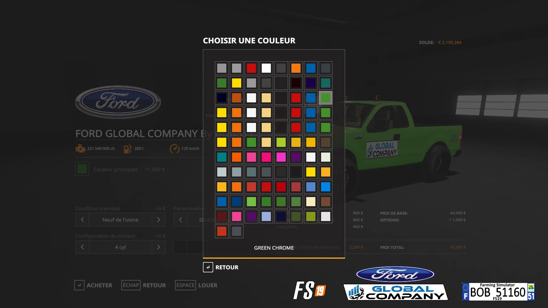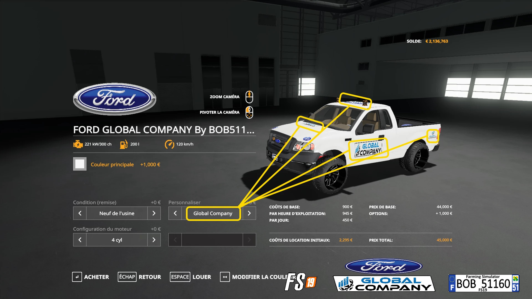 MOD FORD GLOBAL COMPANY BY BOB51160 V1.0.0.1 FOR FARMING SIMULATOR 2019 Hi everyone Today I am introducing FORD GLOBAL COMPANY BOB51160, with a color choice for the cockpit, I also added a few beacons: 6 in total, 2 in the front, 2 in the cockpit and 2 in the rear, as well as the Global Company logo, see attached photos for more information. Credits: BOB51160 |
