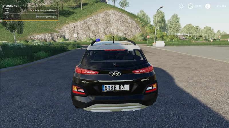 MOD HYUNDAI KONA 2018 KRIPO V1.1 FOR FARMING SIMULATOR 2019 Recycled / converted version of Hyundai Kona 2019 Kripo from the original author TschiZack. In this version blue lights were added, as well as a siren. Version 1.1 - More design choices; Credits: TschiZack, Sawside_Gaming |