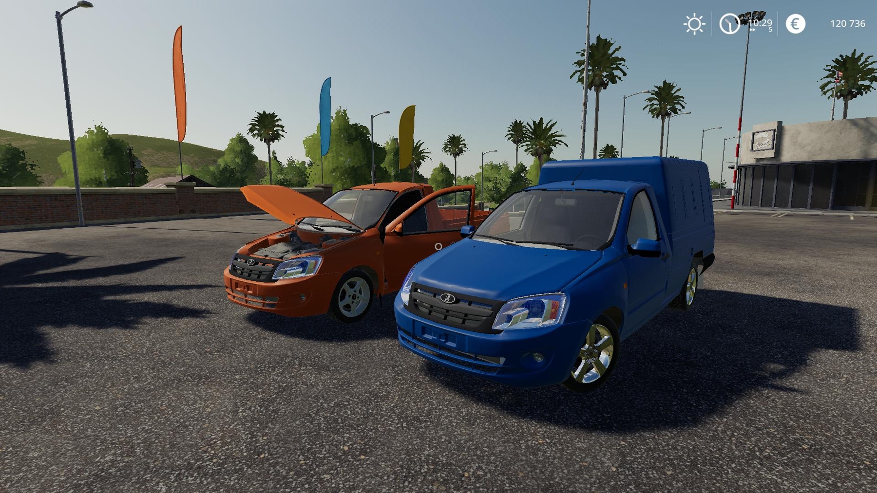 Mod LADA GRANT PICKUP V1.0 for Farming Simulator 2019 Choice of a booth. Choice of 10 types of wheels. Choice of body color and design. Arrows working. Suspension running. Tow bar with electrics. Log clean. Credits: Lex90 FS19:kulibin |