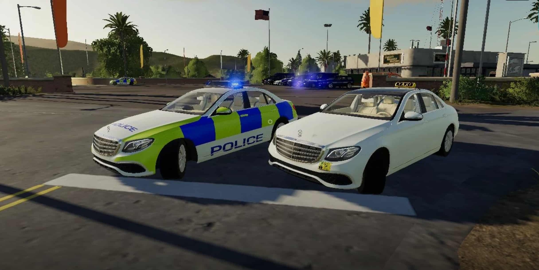 MOD MERCEDES SEDAN HYBRID UK POLICE / TAXI v1.0.0.0 for Farming Simulator 2019 This is a British police car, which is a hybrid sedan version (station wagon version coming soon).
