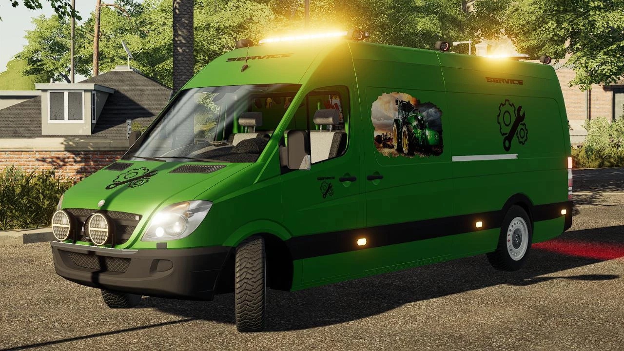 МOD Mercedes Sprinter Servicecar v1.0.0.0 for Farming Simulator 2019 Here is the Sprinter I edited, -Added rim colors. -Added and configured Beaconbar -Added strobe lights -Added the sign of the Norwegian tablet -New details on the car. * Service maintenance * Photos of 3 types of tractors