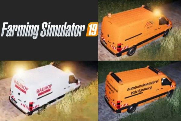 MODPACK FROM NG_M AND COOPERATION V1.0.0.0 FOR FARMING SIMULATOR 2019 This modpack contains 5 Mercedes Benz Sprinter vehicles, 4 of which are construction site vehicles and one is an ambulance. Credits: NG_M, ls19&mb; modding |