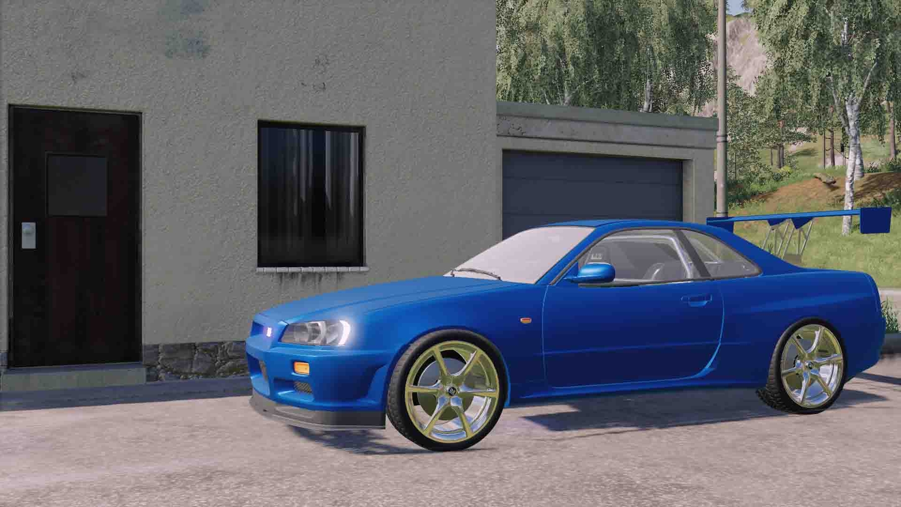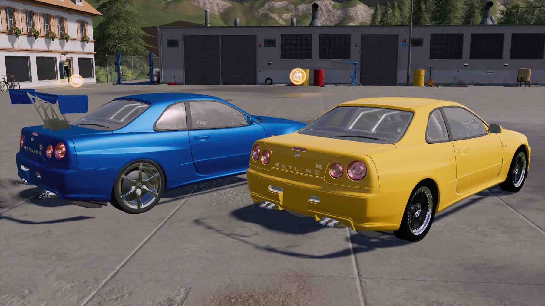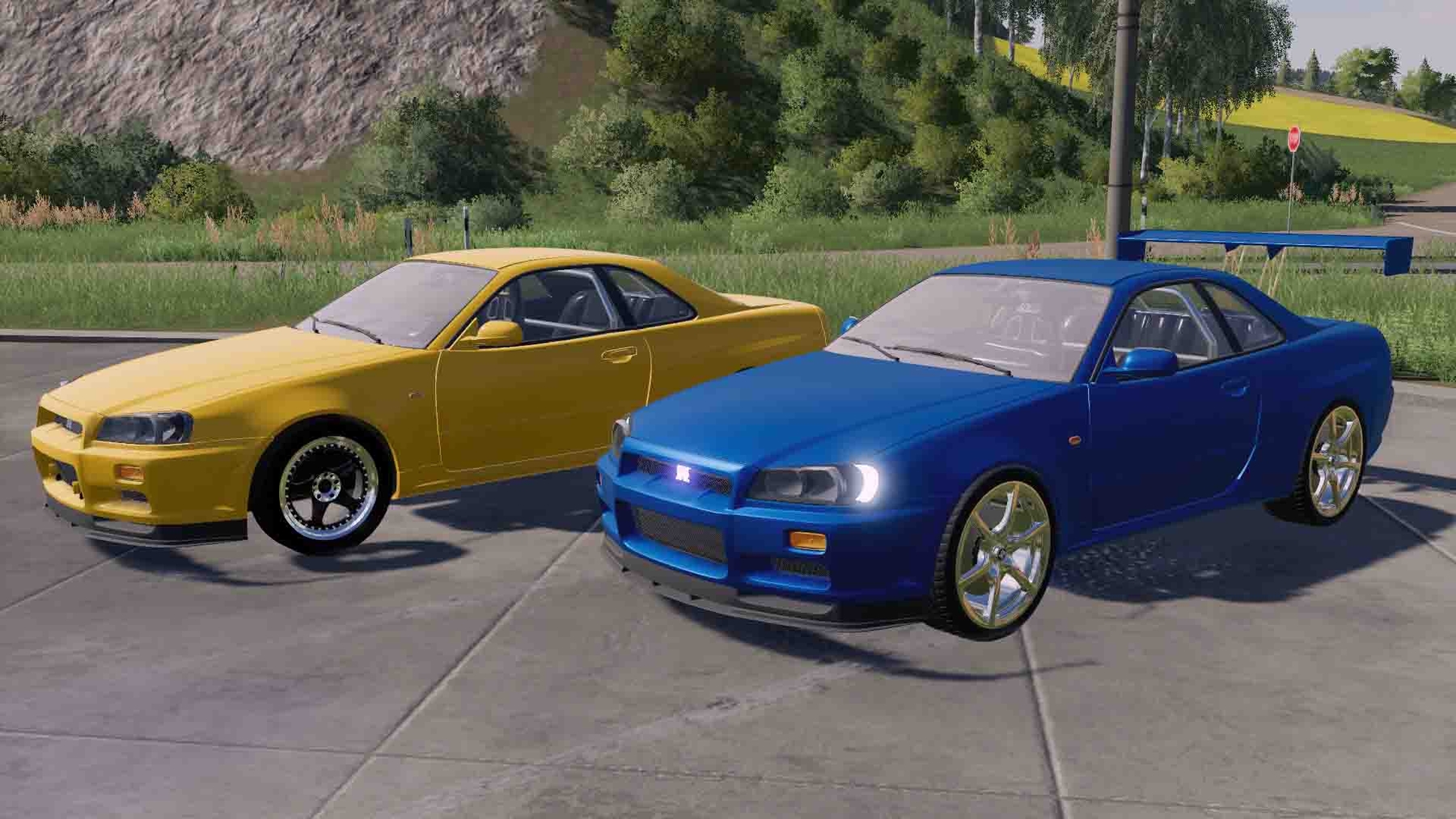 MOD NISSAN SKYLINE R34 GTR 1999 V4.0.0.0 FOR FARMING SIMULATOR 2019 - Power: 441 kW / 600 hp; - Speed: 190 km / h; - Fuel tank volume: 120 l .; - Cost: 50,000 €; - Choice of the main color; - Additional lighting configuration; - Spoiler configuration; - Wheel configuration; - Engine configuration; - Working lighting equipment; - Leaves traces.