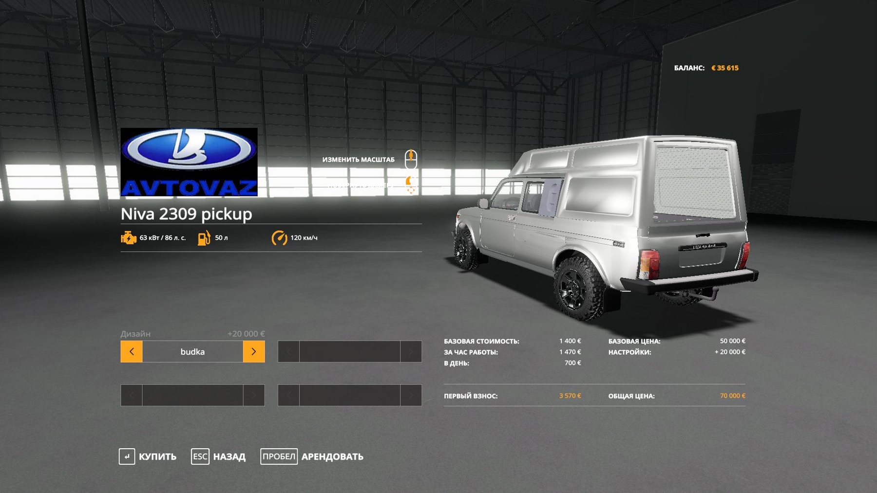 Mod NIVA 2309 PICKUP V1.0 for Farming Simulator 2019 The design is chosen. Turns on the towbar. Work light. Credits: Lex90,convert to FS19:kulibin |