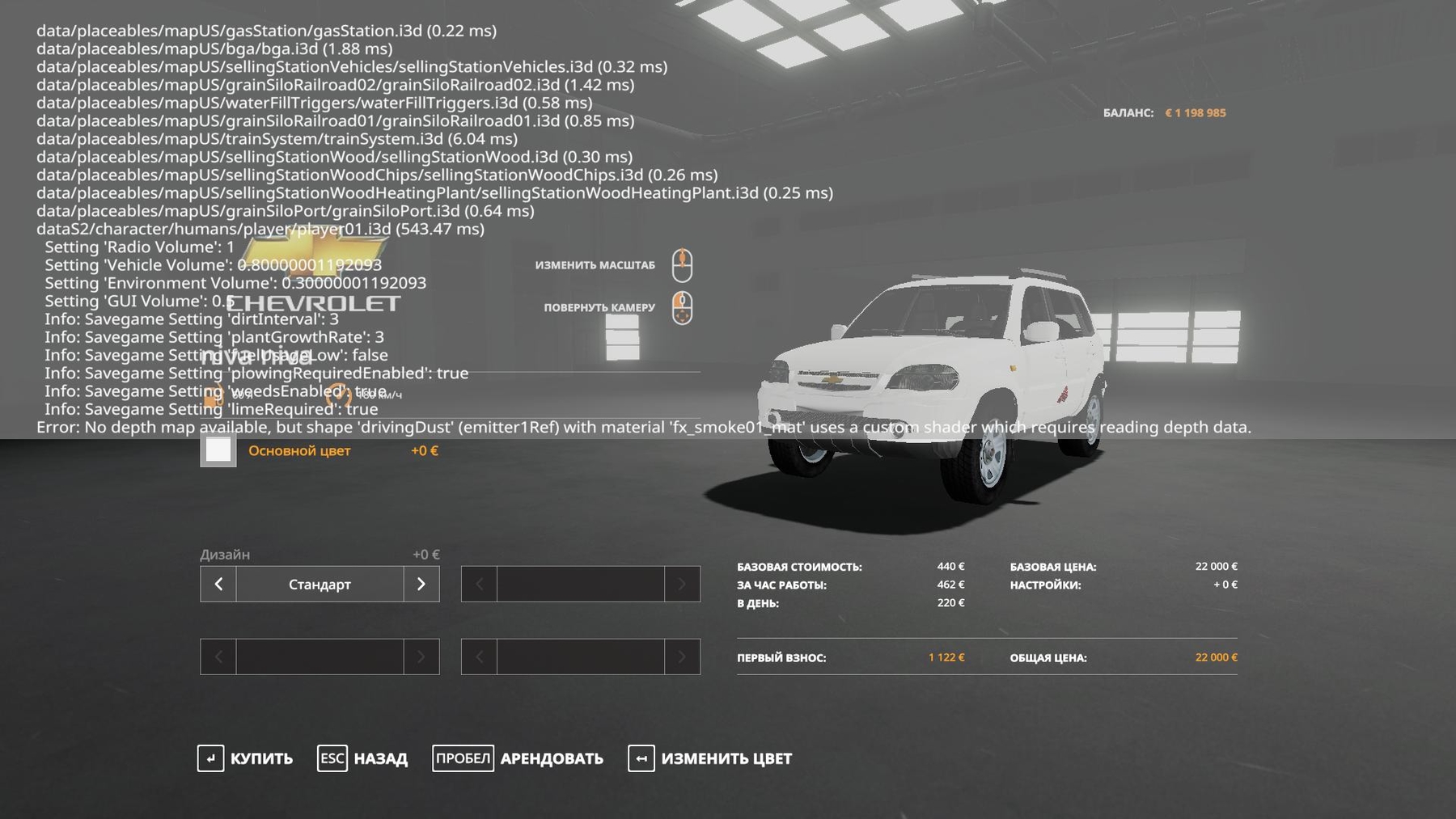 Mod NIVA CHEVROLET V2.0 for Farming Simulator 2019 I cleaned the log from errors Added a choice of color and dirt Fixed fixing of grass Fixed the driver and hands on the steering wheel Added animation of the trunk Highlighted headlights and tumanki Credits: неизвестен,FS19:kulibin |