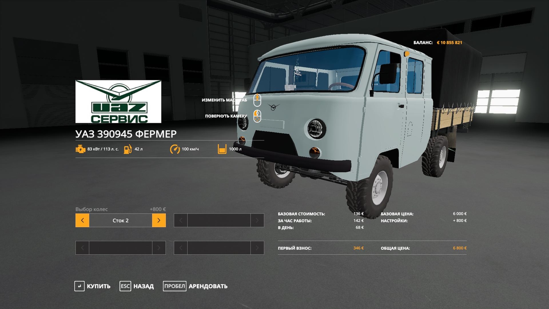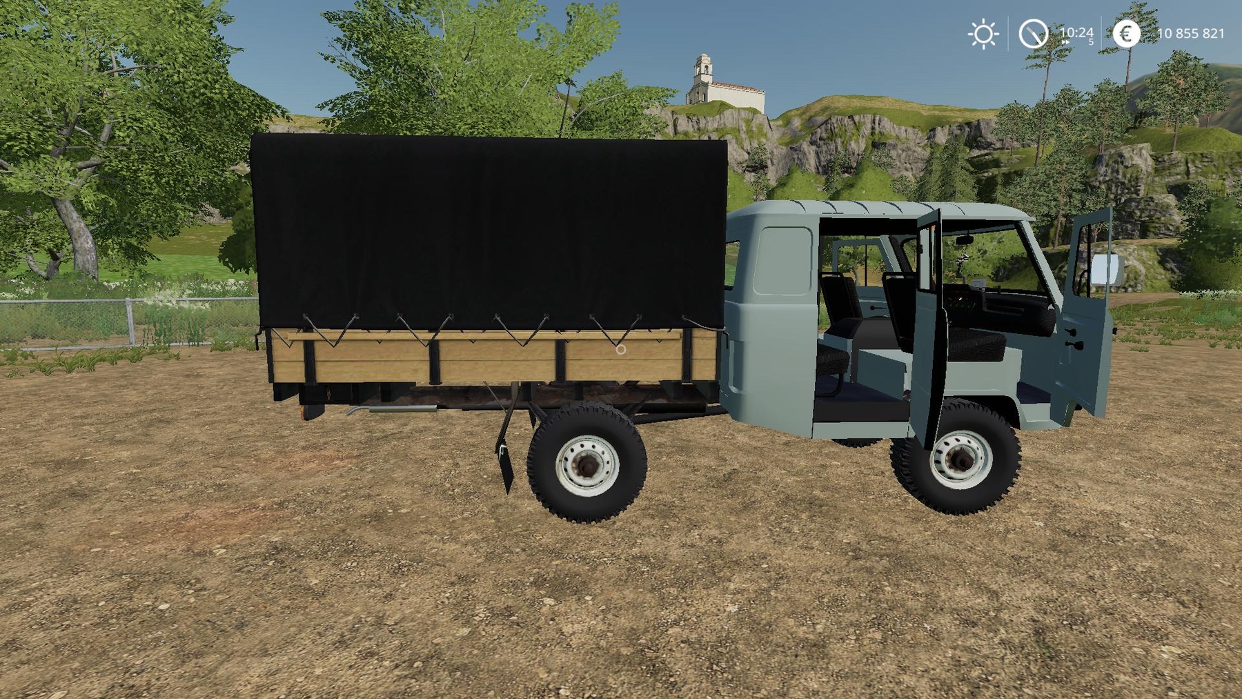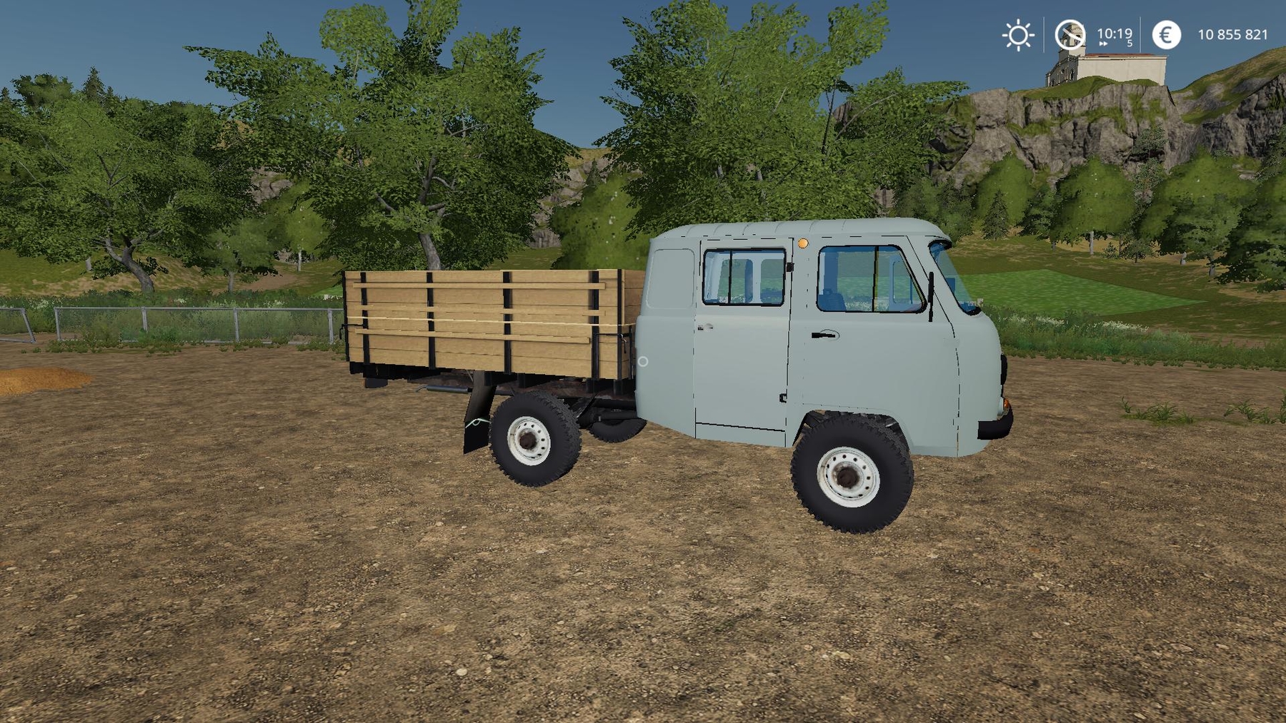 MOD UAZ 390945 V1.0 FOR FARMING SIMULATOR 2019 Choice of 4 types of wheels Carries all types of crops Fixing belts Body volume 1000 l Animation: start, doors, gearshift lever, mudguards, muffler, hanging Native sounds with gear shifting Working mirrors, suspension and tidy Log clean For more details, see the video below