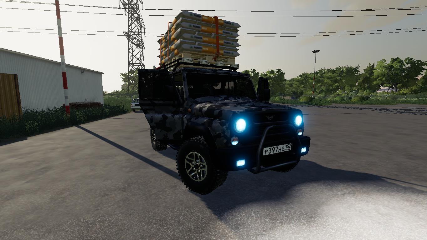 Mod UAZ BARS V 2.0 for Farming Simulator 2019 Power - 133 HP Fuel tank - 120 l. Speed - 100 km / h Work light and mirrors, tidy also highlighted Changes 2.1: added belts, opened the hood and rear doors, revived arrows, fixed errors and warnings Credits: fs19: Свнёк DERZ |