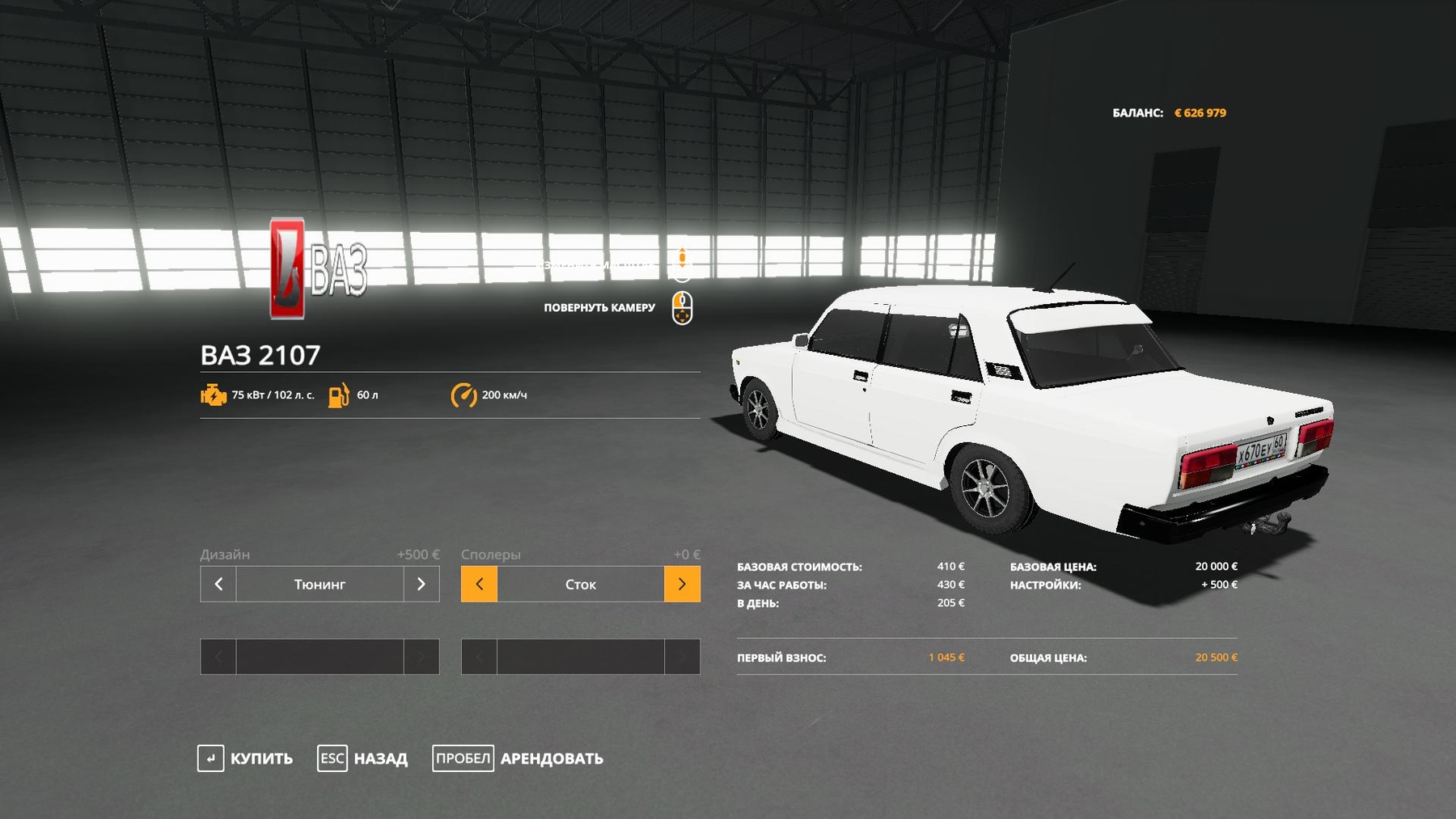 MOD VAZ-2107 - EDITING V0.1 FOR FARMING SIMULATOR 2019 Opened the hood and trunk doors using the SimpleIC script Added a choice of thresholds and 2 types of spoiler in the store Revived the cooling fan Added the dimensions of the doors And so on little things. Look in more detail on the video Alteration author: kulibin Original author: hanter