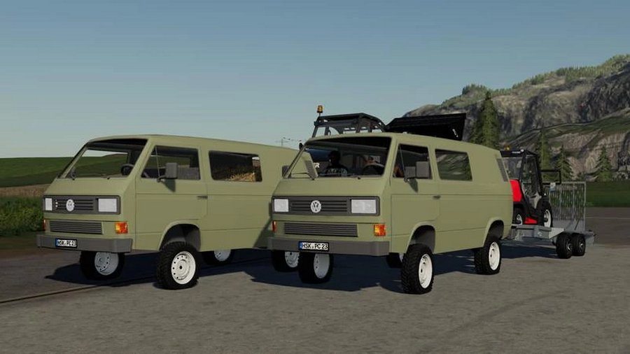 Mod Volkswagen T3 half box v0.1 for Farming Simulator 2019 Specifications: - Price: 4900 USD; - Maximum power: 70 hp; - Maximum speed: 120 km / h; - Maintenance: 40 USD / day; - Tension belts; - Choice of one or a second driver.