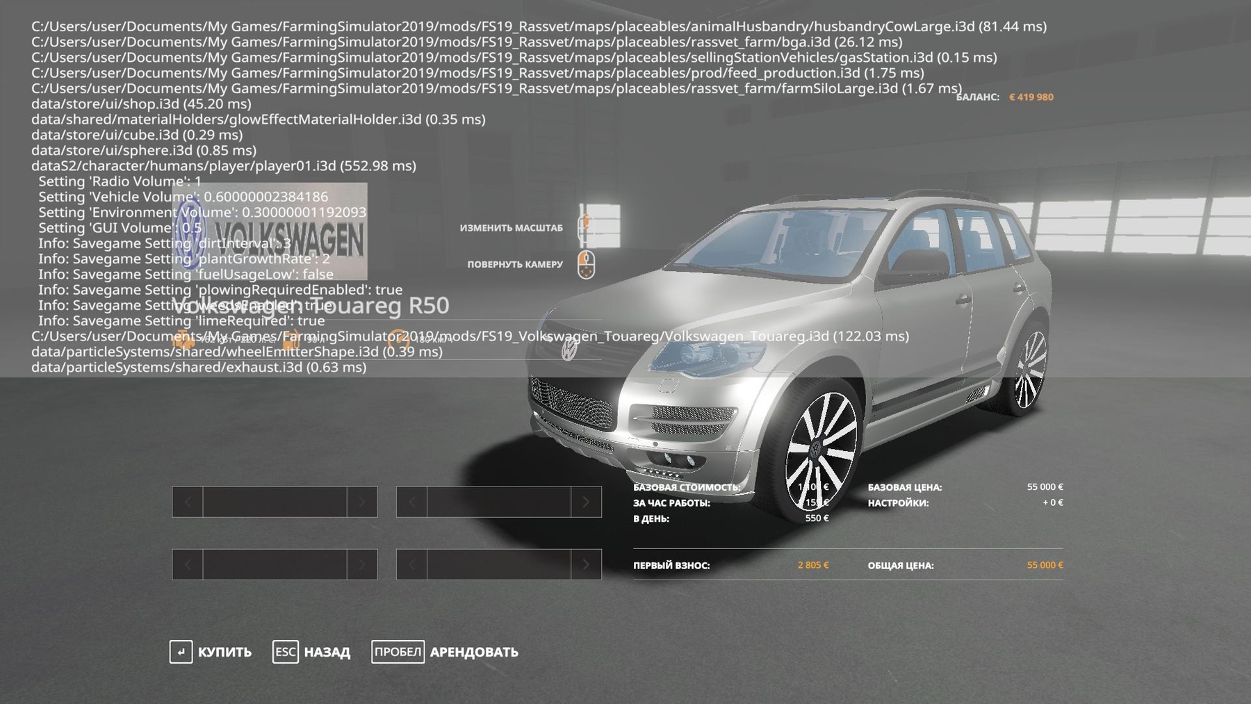 Mod VOLKSWAGEN TOUAREG V1.0 for Farming Simulator 2019 There is a hitch. Credits: =F@RMeR=,Legenda_BPAN,FS19:kulibin |