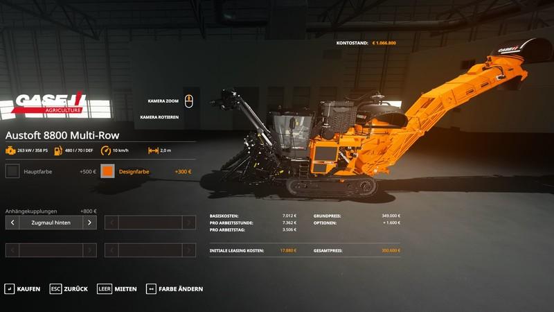 Farmtech TDK1600 combine for sugarcane harvesting, working speed 10 km / h, working width 2.0m. Choosing a primary color. Credits: eGaD |