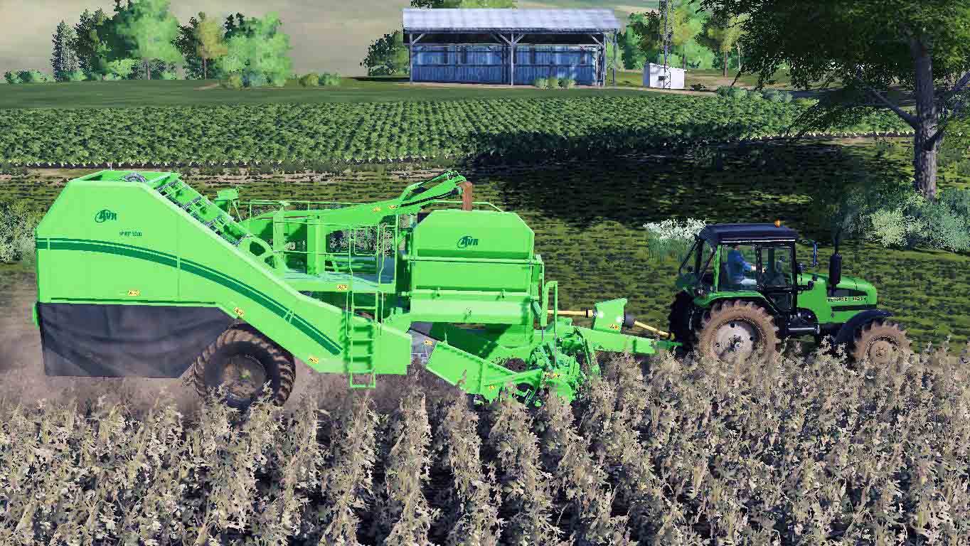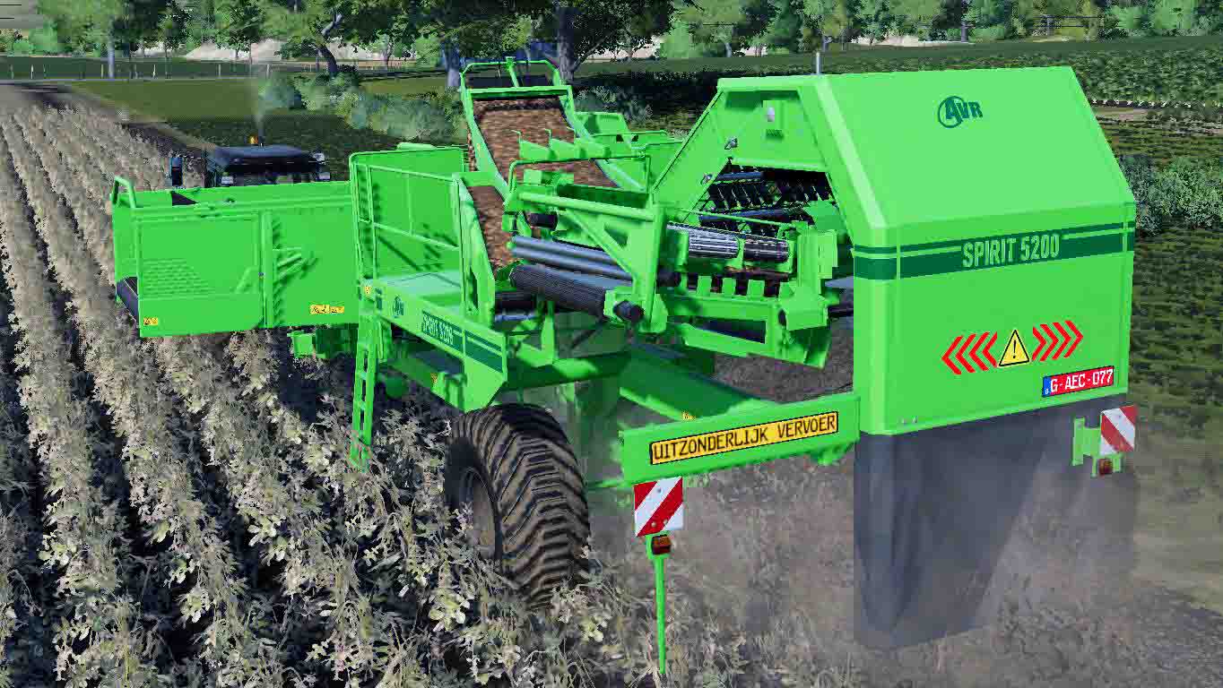 MOD AVR SPIRIT 5200 V1.0.0.0 FOR FARMING SIMULATOR 2019 Trailed potato harvester. Required power: 110 l / s, working width: 1.8 m, working speed: 10 km / h. The choice of wheels, the choice of the volume of the hopper: 9276/15000 l. Employee. PTO. Animation of moving parts. Lighting engineering. Washable.