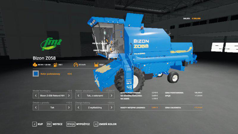 Мod BIZON Z051-8 REKORD v1.0.0.0 for Farming Simulator 2019 Power 120 HP Credits: MaksModding |