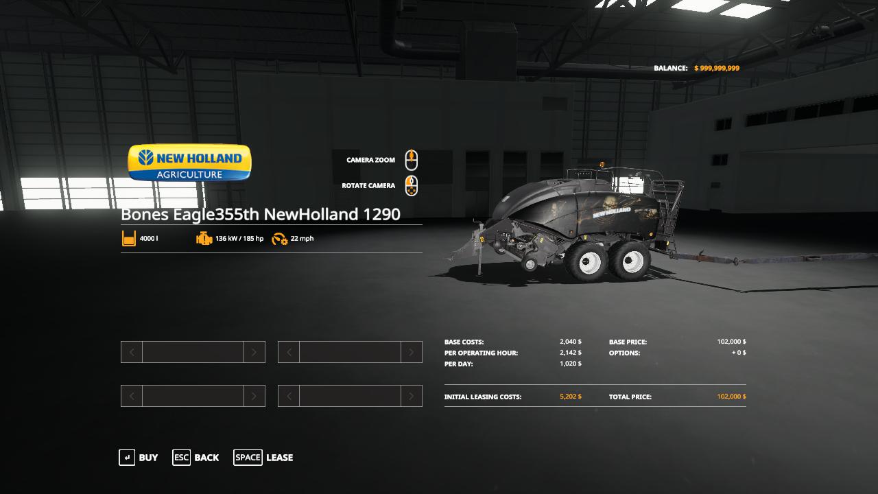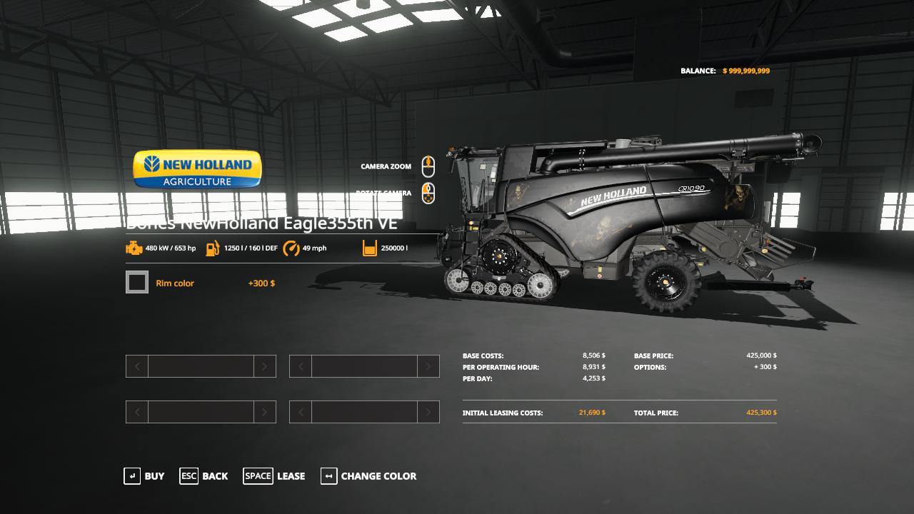 Mod BONES NEW HOLLAND PACK EAGLE355TH VE V1.0 for Farming Simulator 2019 Bones Eagle355th CR10.90 combine Credits: Eagle355th,Otis Little Bear Modding |