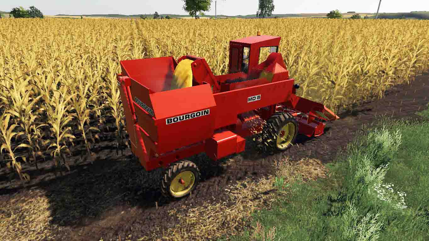 MOD BOURGOIN MD8 V1.0.0.0 FOR FARMING SIMULATOR 2019 Self-propelled corn harvester. - Transport / working speed: 28/9 km / h; - Working width: 2 m; - Hopper volume: 1700 l; - Animation of the speedometer, propeller shaft, fan, pulleys; - The back door opens; - Trailed; - Lighting engineering, beacon; - Washable.