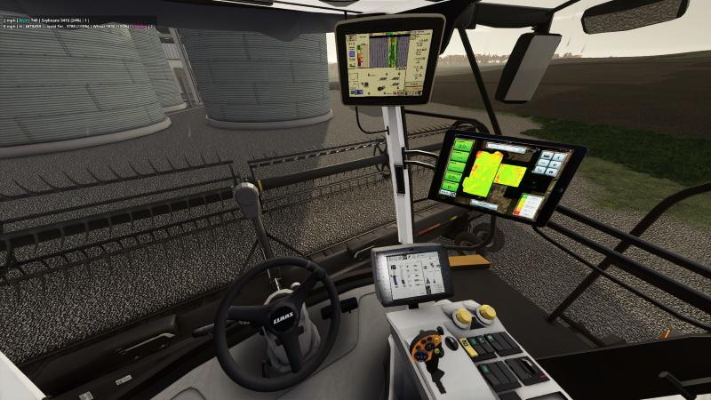 Monitors in the cockpit for the JD 2630 and iPad with field of view. |